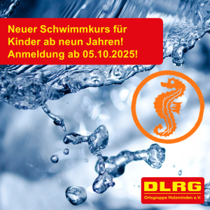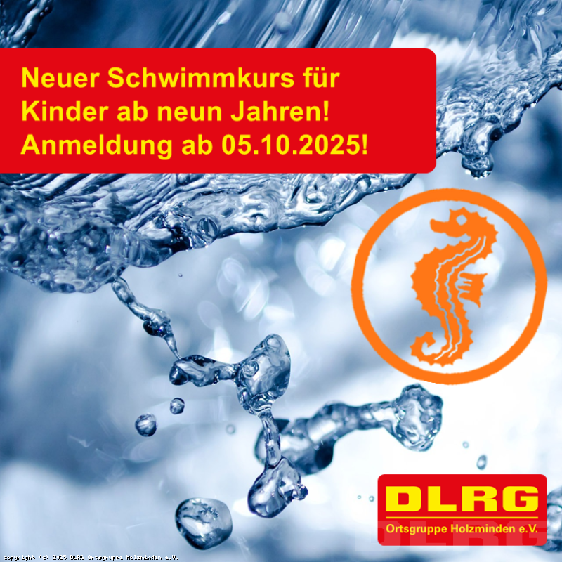 Vom 11.10.2025 bis 15.11.2025 wird durch Ortsgruppe DLRG OG Holzminden e.V. im Fachbereich Anfängerschwimmen die Veranstaltung Schwimmkurs für Jugendliche (Seepferdchen) ab 9 Jahren für jeden angeboten.