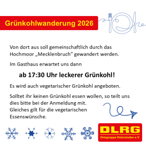 Zusammen mit unseren Mitgliedern und dem Jugend-Einsatz-Team wollen wir am 14.02. gemeinsam durch das Hochmoor Mecklenbruch bei Silberborn wandern und anschließend gemütlich Grünkohl essen.